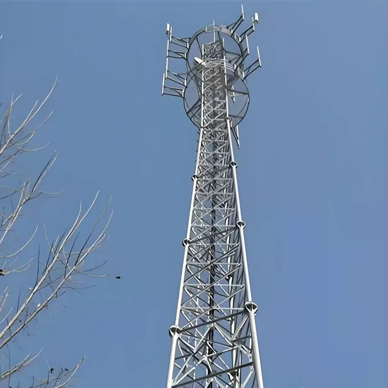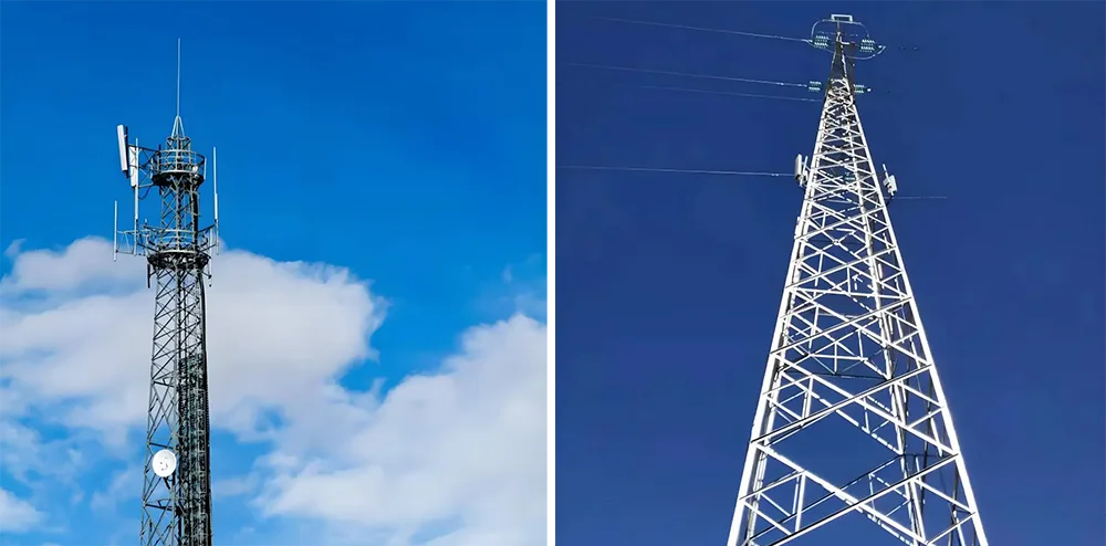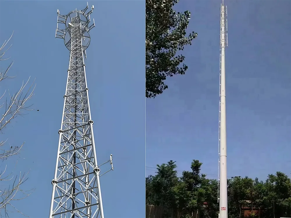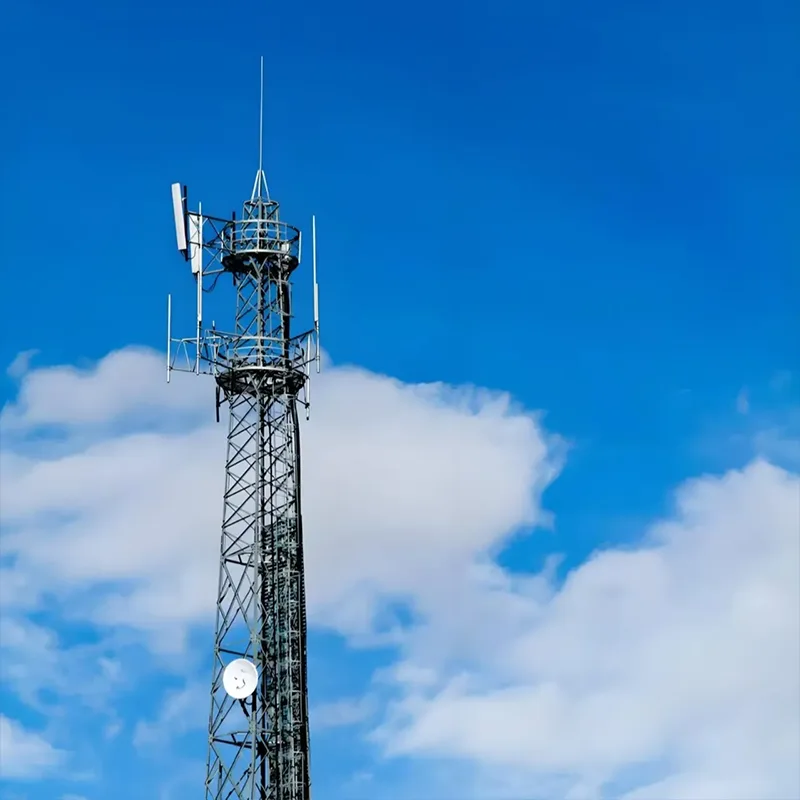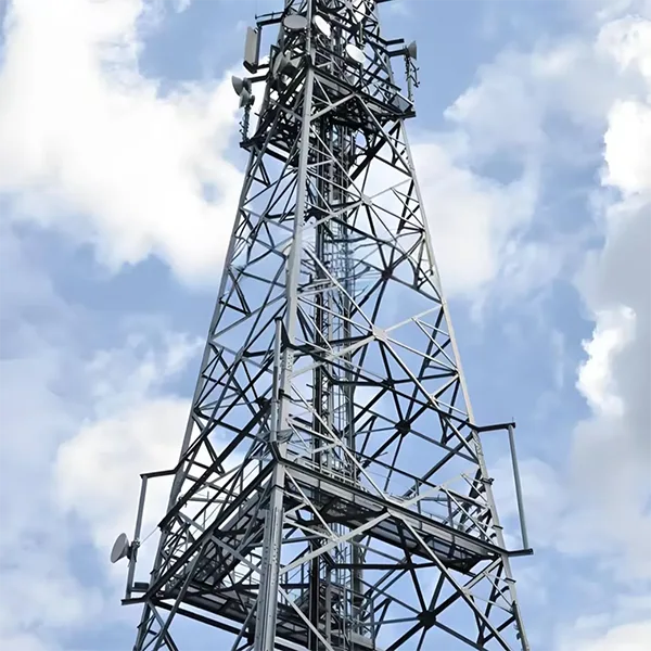 Бұрыштық болат мұнаралар: біркелкі бөлінген тор тәрізді ферма құрылымы бар бұл мұнаралар күшті жүк көтеру қабілетін ұсынады. Олар бір уақытта бірнеше антенналар мен микротолқынды тарату жабдығына қолдау көрсете алады, бұл оларды өткізу қабілеті жоғары байланыс жүктемелері қажет қала маңындағы және таулы аймақтар сияқты ашық аумақтар үшін өте қолайлы етеді.